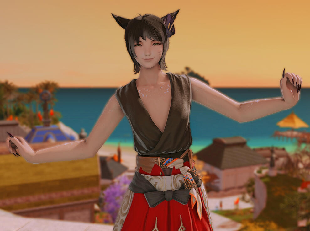 A fun-loving, no fuss carpenter from Gridania. Kiyohime will make everything and anything (wood**) upon request! Just please set your date in advance, because once she gets going, it has has HAS to be perfect. An artisan ought to act like one in all ways, always.And if she's not laboring away at her workshop in the Lavender Beds, she's out exploring all the corners of Eorzea via chocobo porters. Good little things; she can't get enough of how they smell: "like home, but add more dust and warmth." Is how she'd put it. So far, her adventures have led her to the three major cities, all of which have her name written in the woodworker's ledgers. But, her favourite will always be Gridania. One would think that it's all just trees, but maybe if you spent as much time with nature as she did, you may also see what she sees.Currently, she can be found in all sorts of places-- may it be the fighting pits of Ul'dah, supplying weapons, or even at the far-reaching Kugane, trying to learn all the recipes the East could offer! Nowhere is nowhere in the eyes of this curious Miqo'te!